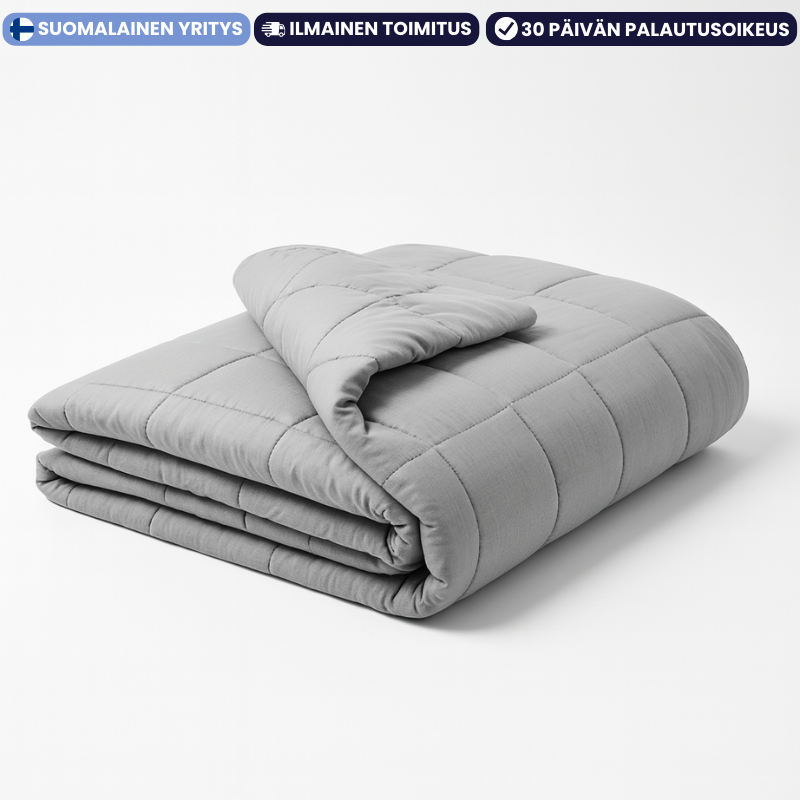 Painopeitto voi olla yksi yksinkertaisimmista tavoista rauhoittaa kehoa ja mieltä sekä syventää unta. Monet asiakkaistamme kertovat, että ajatusten harhailu vähenee, mieli tyyntyy ja nukahtaminen helpottuu, kun he käyttävät Finnrest™ painopeittoa.